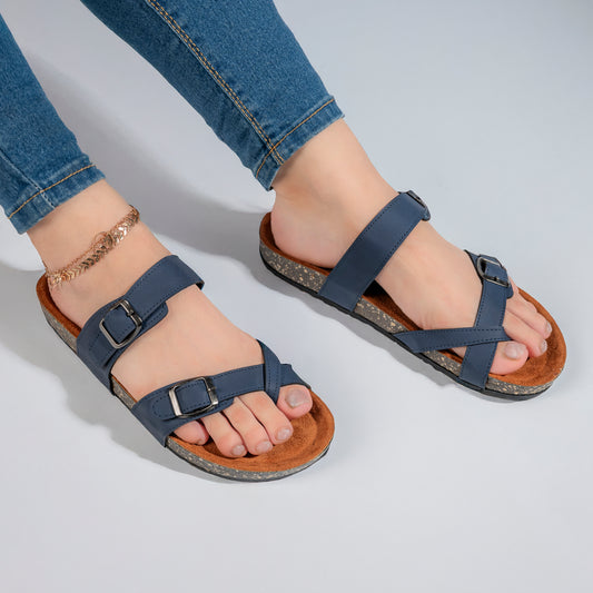 Leather slipper | navy blue - Model 130