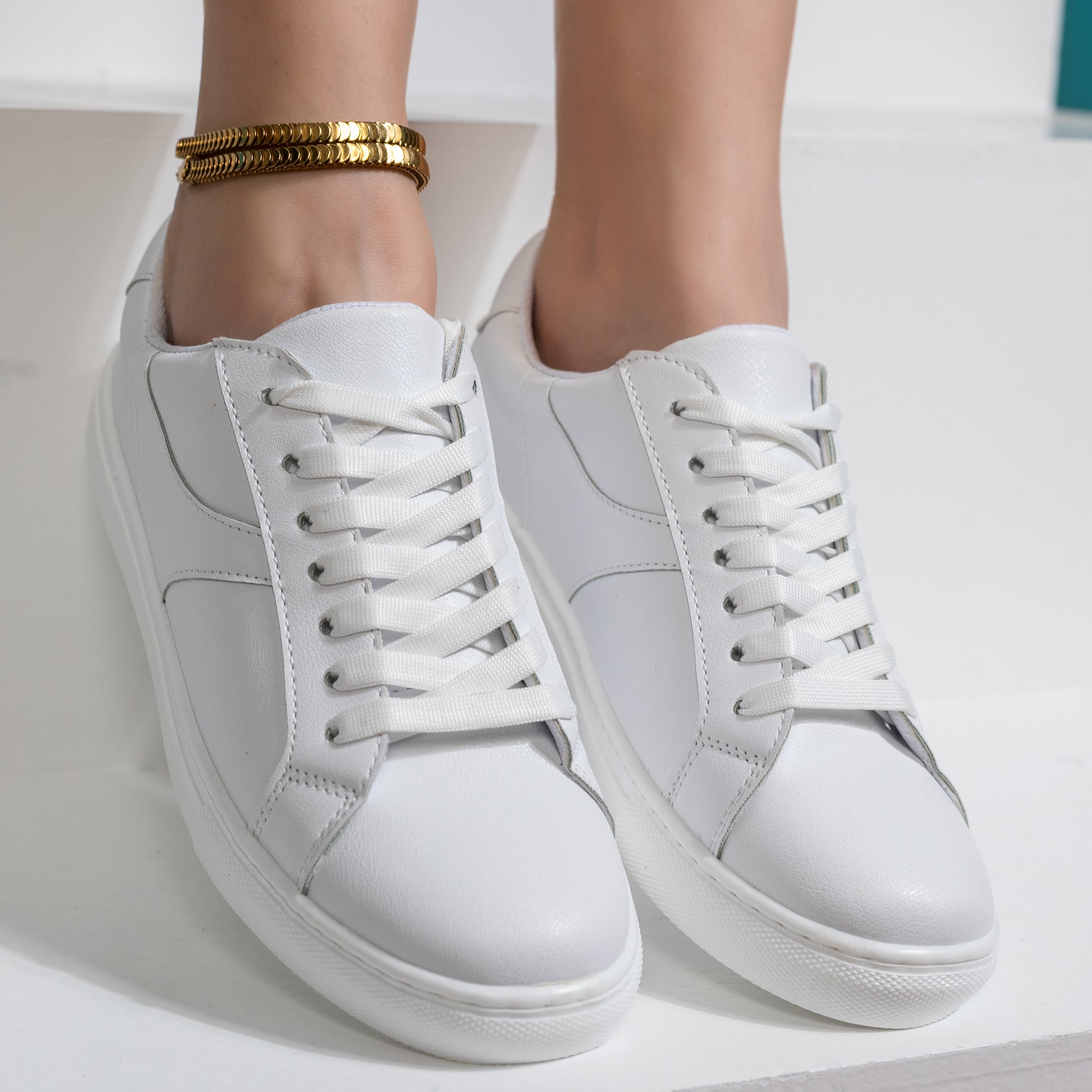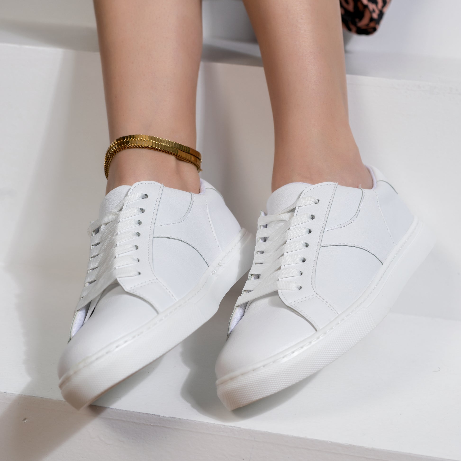 Elegant white sneakers, offering perfect comfort and a modern, stylish look.