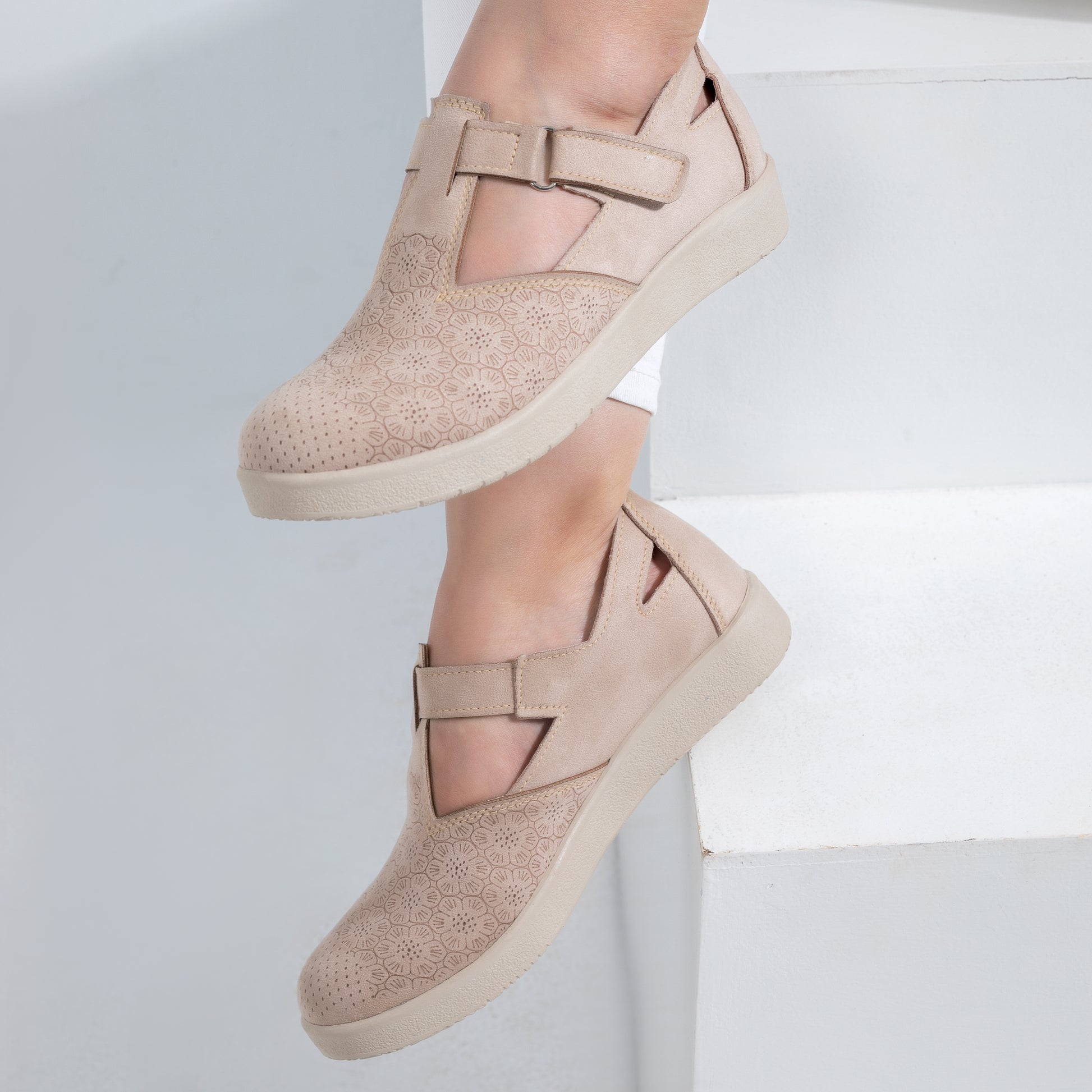 A women's Espadrille made of soft suede material. It features a medical sole that provides excellent comfort and support for the feet, with a non-slip base. A modern design suitable for all occasions and times.